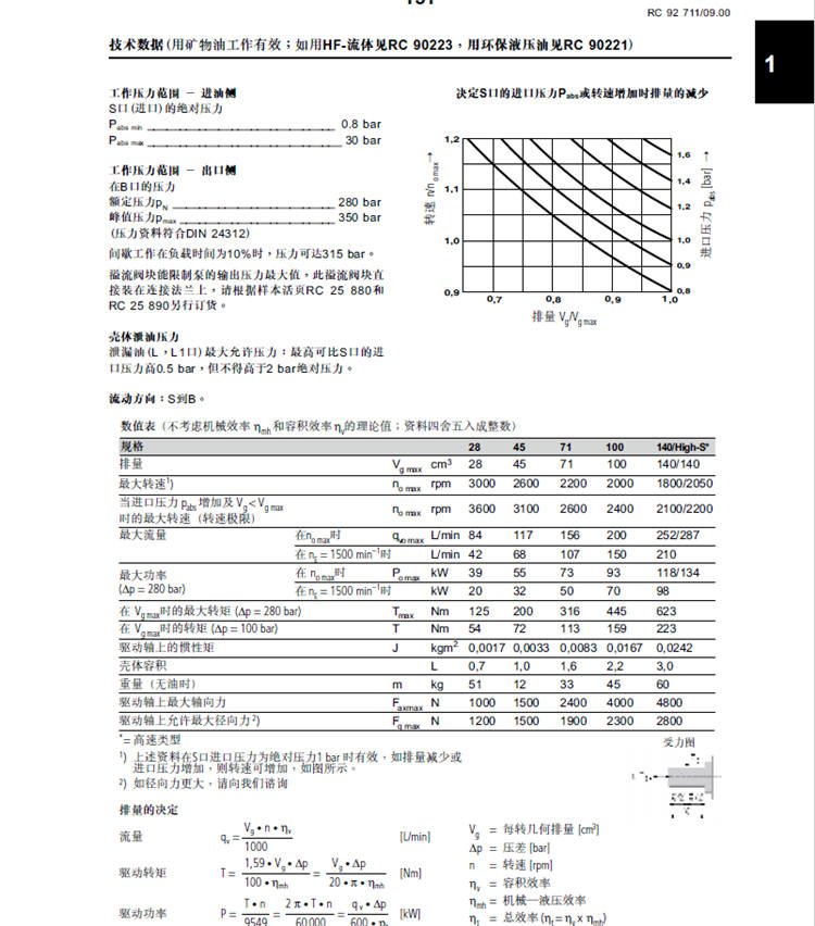 泵的標準排量:140ml/r;